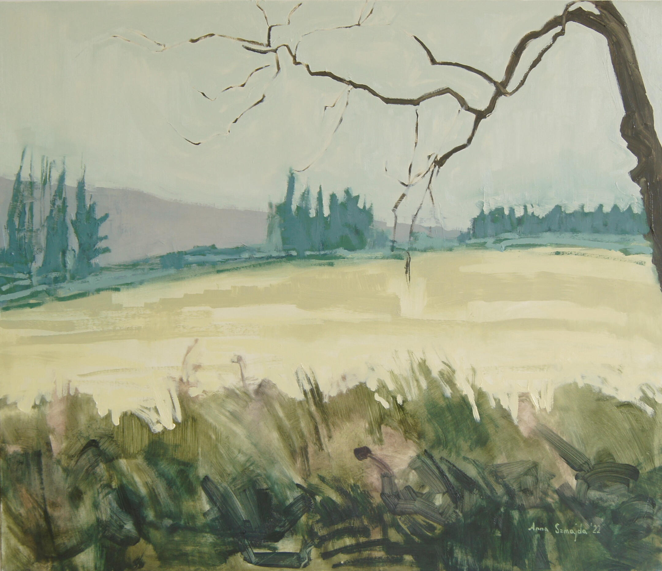 I am a Polish artist living and working in Brighton, South East of England.I studied traditional oil painting, life drawing and print techniques at the Academy of Fine Arts in Warsaw, and continued my practice whilst travelling, and since moving to the UK more than 10 years ago.Having spent much of my early artistic development working plein air, I’ve developed a lasting fascination with the natural world. Many of my works explore the meaning I find in the human-nature connection, from representational pieces to abstract works, and everything in between.I am also interested in the relationship between art and somatics (a practice centred on sensing and responding to the body’s internal signals). I discovered somatic work in my early twenties when seeking relief from chronic pain and continued my explorations through a variety of modalities, including dance improvisation and the Feldenkrais Method. These practices deepened my awareness of the felt sense within my body, and I became curious about how these inner sensations affect my visual perception, and vice versa - how looking at an image can impact my inner embodied landscape.For me, making a painting is a multisensory experience and a meditation on meaning, explored through the process of creative discovery.